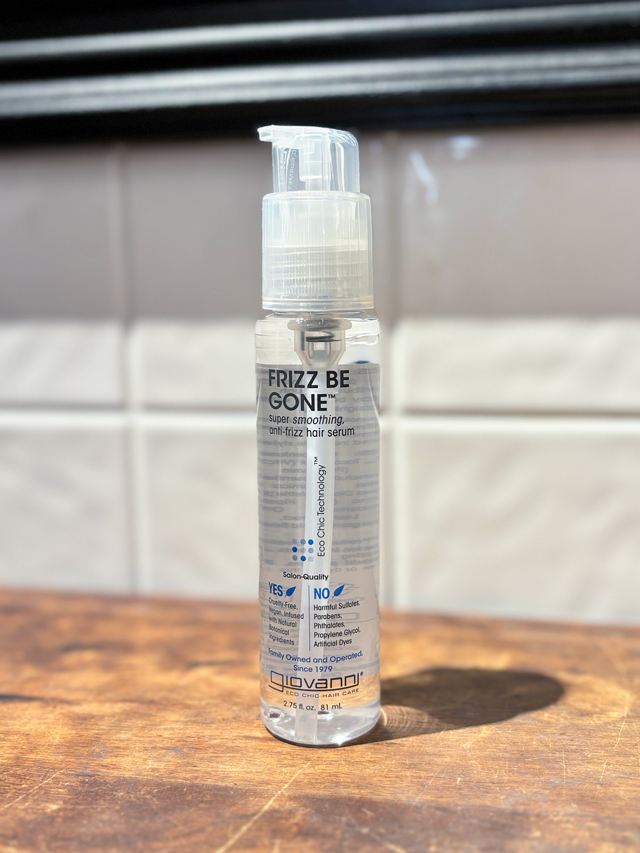 髪を整えてツヤのある髪質へと導くジョバンニ「フリッズビーゴーン ヘアセラム」。タオルドライの後、ドライヤー前に使えば熱ダメージからも髪を守ってくれます。