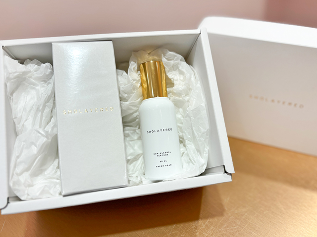 「香りを重ねて楽しむ」という発想から誕生した「ショーレイヤード」。ブランドコンセプトを具現化したボトルデザインのオードトワレはお部屋に飾ってインテリアとしても楽しめます。石を積み重ねたようなフォルムが印象的。