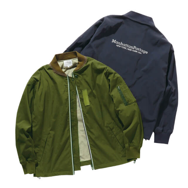 バッグブランドとして人気のマンハッタン ポーテージの完全別注アイテム。使いやすいMA-1型のブルゾンは、リフレクタープリントや座標プリント、フロント上部のスナップボタンなど、細部に至るまでデザインにこだわられています。素材には汎用性の高いコーデュラナイロンストレッチを採用。デザイン性の高さと機能美を兼ね備えたスペシャル仕様です。