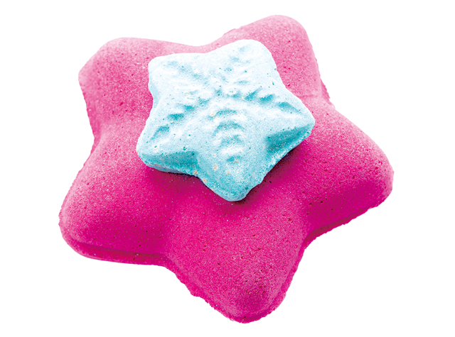 「ラッシュ」の冬の香り「フェアリーキャンディ」を楽しめる入浴料。綿菓子のような甘い香りは冬限定のご褒美にぴったり。青い雪の結晶型のパーツを溶かすと、ブルーのラメがキラキラ輝くお風呂に。ピンクの大きな星型パーツはネオンピンクカラーのお風呂が楽しめます。