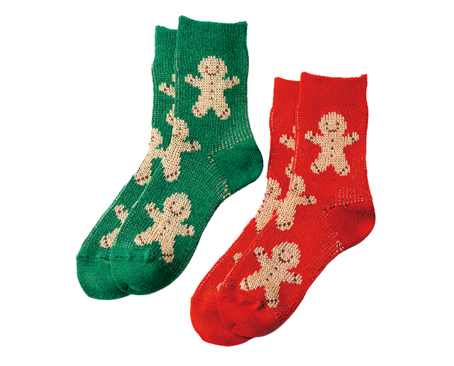 大きなジンジャーブレッドマンが目を引くキュートなクリスマス限定デザインのソックス。クリスマス感いっぱいの「アカ」「グリーン」と、ベーシックで使いやすい「ベージュ」「クロ」の4色で展開。