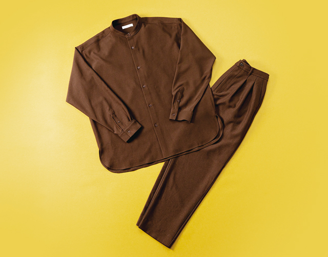 高級感漂うウールライクなシャツ。首元をバンドカラーにすることでクリーンな印象を演出します。オーバーサイズのトップスは、インナーにパーカーやトレーナーを合わせてシャツアウターとしても着こなすのもおすすめ。