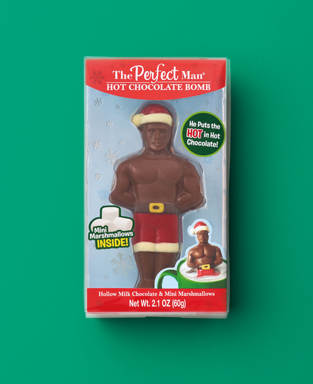ホットでユニークなチョコレートボムが「プラザ」に登場。クリスマス限定、サンタクロースの衣装を身に着けたパーフェクトボディの男性が可愛いチョコレートです。温めたミルクに浮かべるとチョコレートが溶けてマシュマロが浮かびます。贈った人にとびきりのインパクトを与えられること間違いなし。