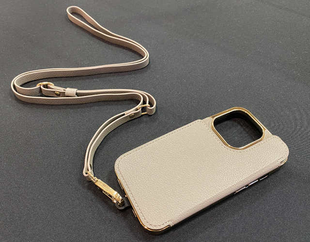 大人かわいい上質なスマホショルダーケース。耐衝撃性にも優れ、大切なiPhoneをおしゃれにしっかりガードします。背面にはICカードやクレジットカードなどを2枚入れられるポケット、メイク直しに便利なミラー付き。パッケージはミニポーチとして再利用可能なエコ仕様です。