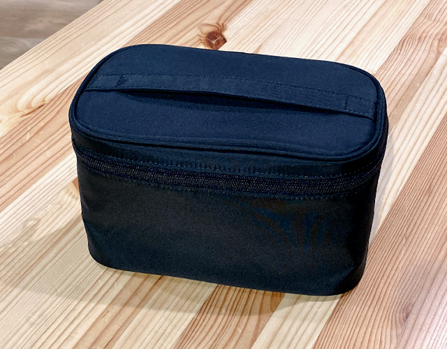 細かいメイク用品などの整理に便利なポーチ。コンパクトで置き場所に困らないサイズ感です。