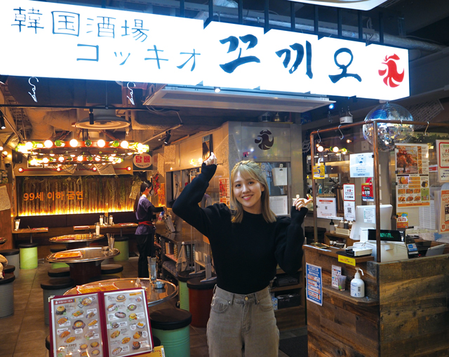続いてやってきたのはプラザ館M2Fにある「韓国酒場 コッキオ」。韓国の酒場を再現した店内で、トッポッキやヤンニョムチキン、ボッサムなどおなじみの韓国料理がいただけます。天王寺で韓国気分を味わえるお店として人気です!