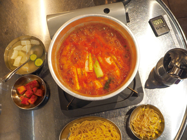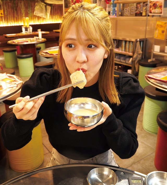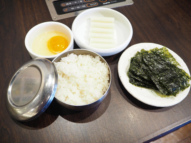 スープがあまれば、雑炊セット(430円)をオーダーして、卵や韓国のりを加えながらおいしい雑炊に。トッポギ(260円)とトッピングチーズ(130円)でチーズトッポギを楽しむのもおすすめ!