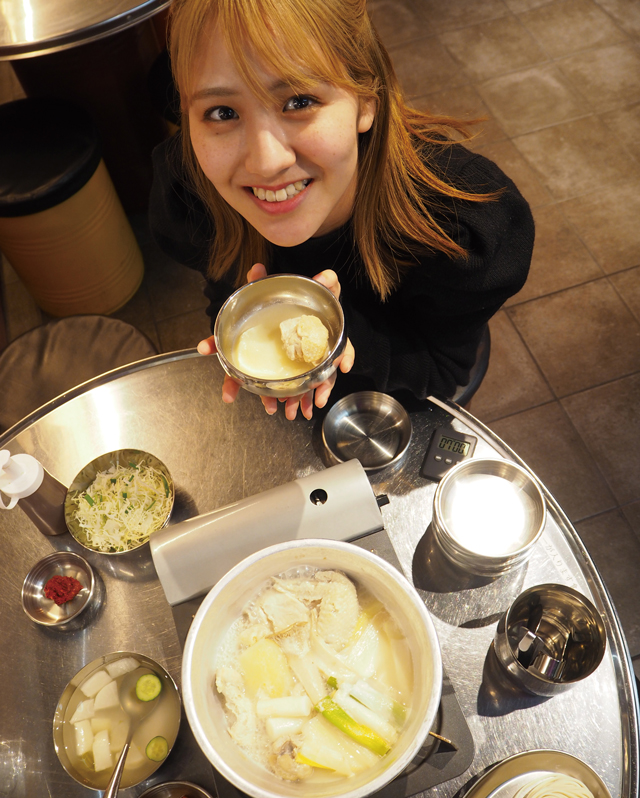 シメは韓国うどんのカルグクスが◎。つるつるの麺がうまみたっぷりのスープを存分に吸って、とってもおいしくいただけますよ。スープは無料で追加もできます。