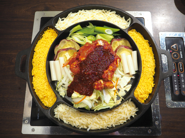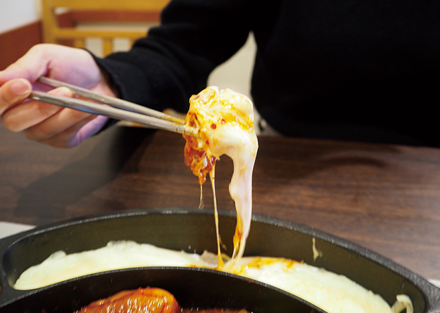 甘辛チキンととろ〜りチーズのマリアージュにはほっぺが落ちます……。具材を追加するなら、鶏肉(390円)、野菜(390円)、チーズ(310円)、トッポギ6本(260円)がおすすめ。チーズを存分に絡めながら、余すところなくいただいちゃいましょう。