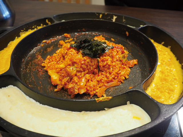 シメは韓国風チャーハン、ポックンパ(410円)!オーダーすればスタッフさんがテーブルで最後まで仕上げてくれます。