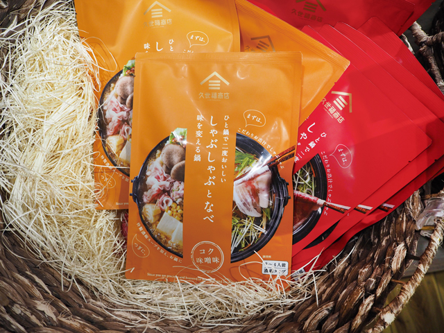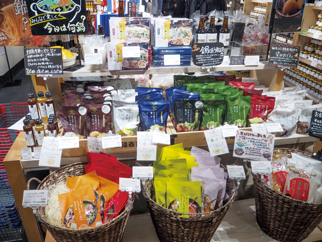 「久世福商店」でも冬になるとお鍋コーナーが充実。オリジナルの鍋つゆのほか、セレクトされた鍋の素やつけだれ、鍋に合うビールなど多彩な商品が展開されています。