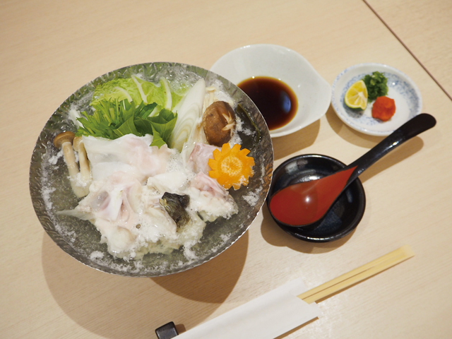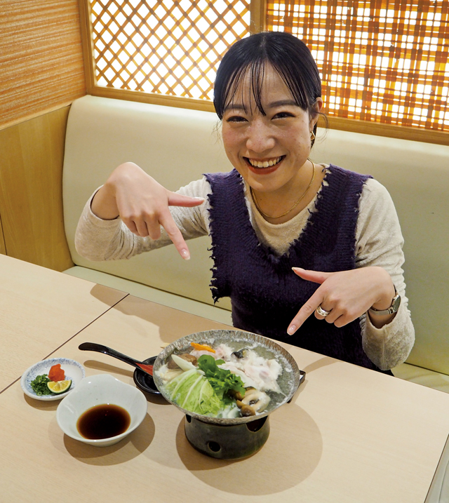 ほかに、冬のお鍋の定番「てっちり」もぜひおすすめしたい逸品です。今が旬のとらふぐは、肉厚でふわふわとした絶妙な食感であと引くおいしさ。