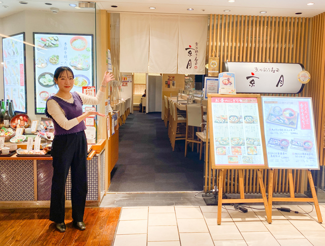 続いて京風料理とお寿司をメインに多彩な和食を展開する「京の彩り寿司 京月」にゴー!お店で毎日引く香り高いだしや、新鮮な魚介が存分に堪能できます。