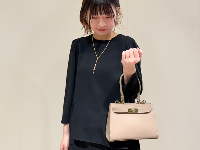 ブラックとプラチナの2色展開。オケージョンシーンにも普段にも使えるブラックがよりおすすめですが、プラチナで軽やかさを演出しても◎。