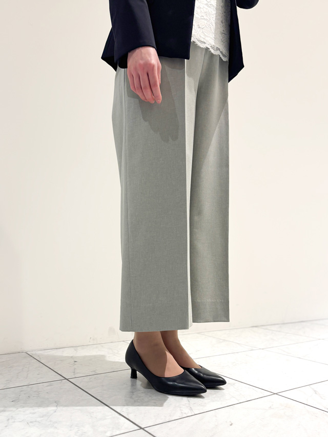 クロップド丈のワイドパンツは足元がもたつかない&ヒールが美しく見えてオケージョンシーンにもおすすめです。センタープレスできちんと感もしっかり確保!