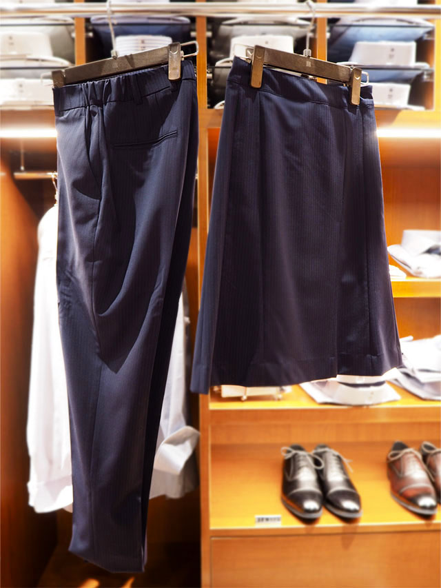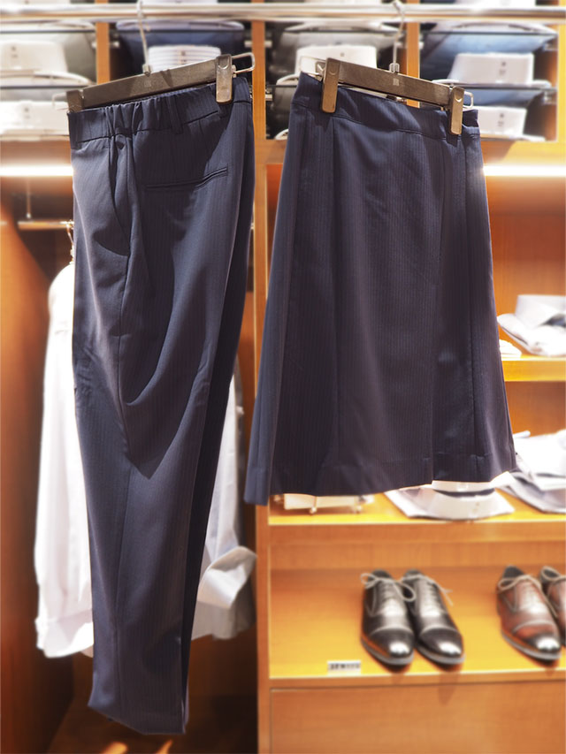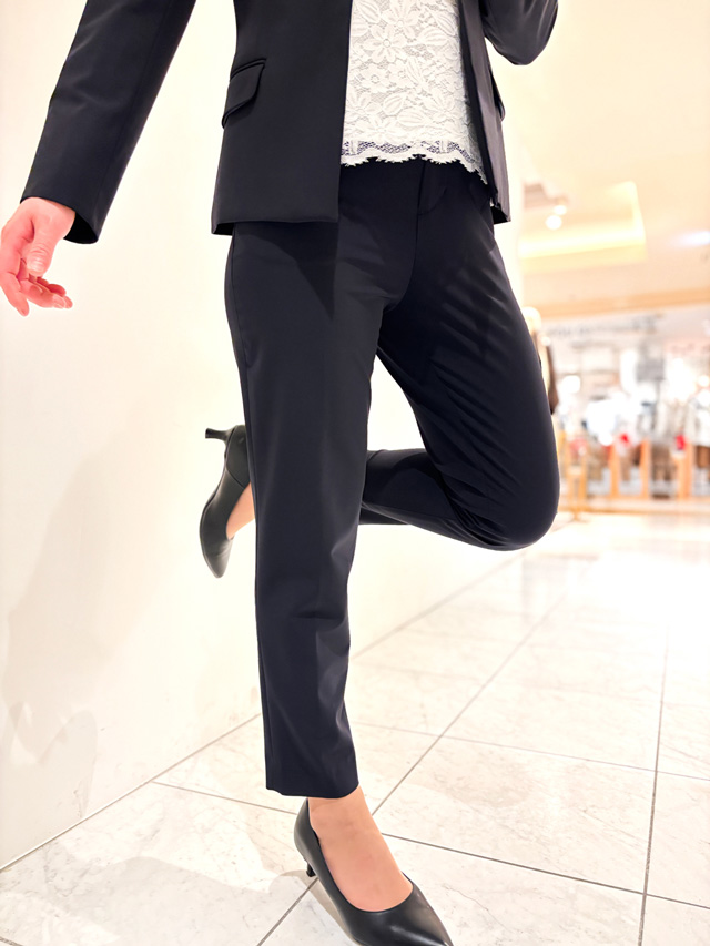 ビジネスでスーツを着用する際は、スカートよりパンツスタイルを選ぶ人も多いそう。スタイリッシュかつアクティブな印象で、しっかり歩く日も難なく過ごせますね。ストレッチも効いているので着心地よく、自宅の洗濯機で洗えるウォッシャブル仕様なのもガシガシ使えるポイント!