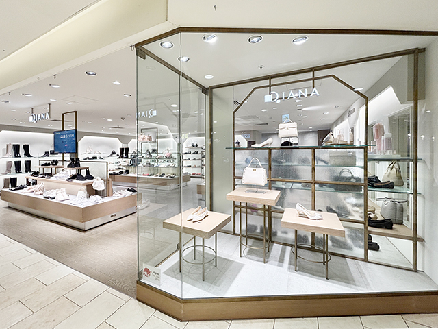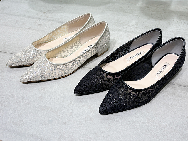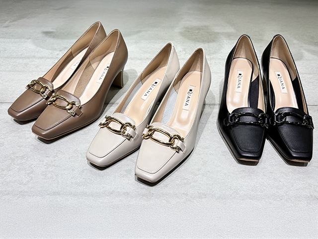 オケージョンシーンに欠かせないパンプスやきれいめシューズなら「ダイアナ」にお任せあれ。プレーンからデザイン性あふれるものまで、ニーズに合わせたさまざまなシューズが並びます。