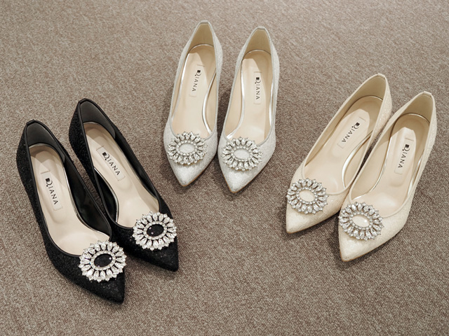 「ダイアナ」には、オケージョンシーンに欠かせないパンプスやきれいめシューズが勢ぞろい。シンプルデザインからエッジの利いたものまで、ニーズに合わせた足元のおしゃれが叶います。