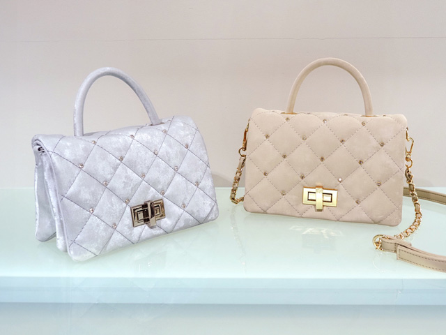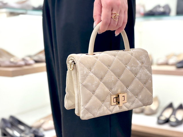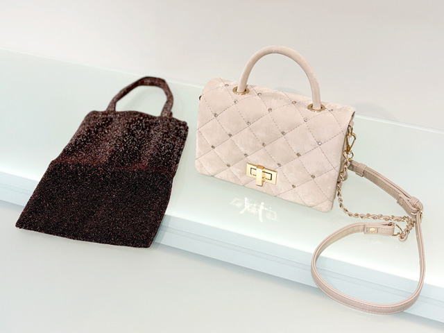 光沢感のある素材で上品な印象のバッグ。店頭に入ってきてもすぐに売り切れになるという人気アイテムのひとつです!
