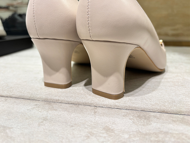 「オケージョンシーンは、つま先&かかとが空いていないシューズがベターとされています。また、歩きやすさを考えてヒール高は3〜5cmを選ぶのが◎。派手すぎずシンプルなものをベースに、ビットやラメなどさりげなくアクセントが映えるものを選びましょう。」(スタッフさん)
