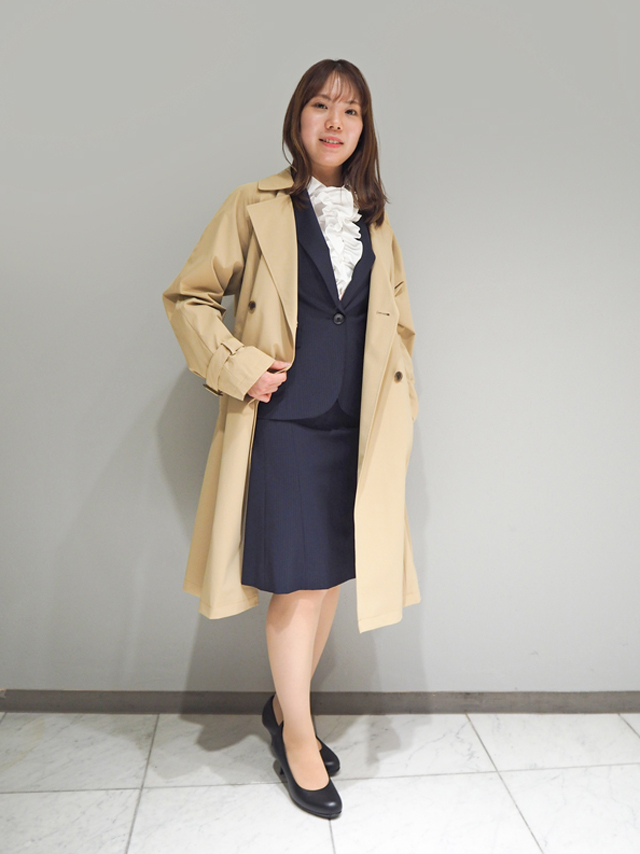 入学式シーズンはまだまだ肌寒いので、トレンチコートを持っているととっても便利。ストレッチが利いて動きやすく、スーツの上からでもゴワつきなく着られます。バックにプリーツ付きでほどよく可愛らしいのもうれしい♡