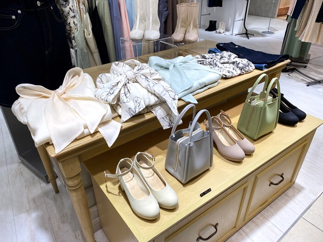 お洋服はもちろん、バッグやパンプスなどファッション雑貨も人気で、クラシカルでフレンチムードなテイストで全身コーデできます。