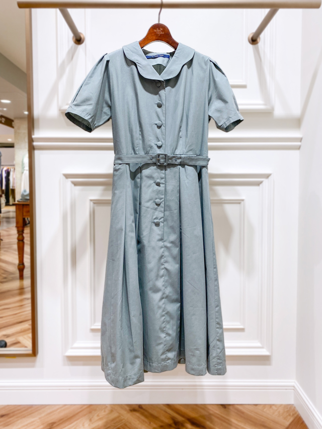 スカラップのような丸みのある開衿がレトロな印象を与えるワンピース。クラシカルなフィット&フレアの美シルエットにこだわり、1枚でもぐっとすてきな雰囲気に。さらりとしたシャツ素材も品よく、夏にも大活躍間違いなしです。