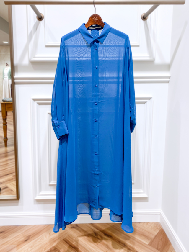軽やかなシアー素材のフレアシャツワンピース。シフォンのドレープがやわらかな質感を生み出し、女性らしく着こなせる1枚です。肌寒い時期は、タートルネックやカットソーに羽織るコーデがおすすめ。暑い時期にはキャミやタンクトップに合わせて、抜け感のあるスタイリングに。