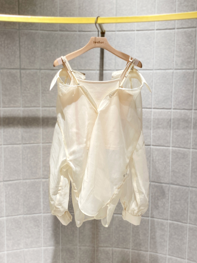 昨年も人気だったキャミソールとシャツのセットがバージョンアップ! 写真のようにドッキングして着れば、肩のラインが自然に現れてヘルシーな肌見せが叶います。もちろんキャミだけ、シャツだけでも着こなせ、着回し力抜群です。