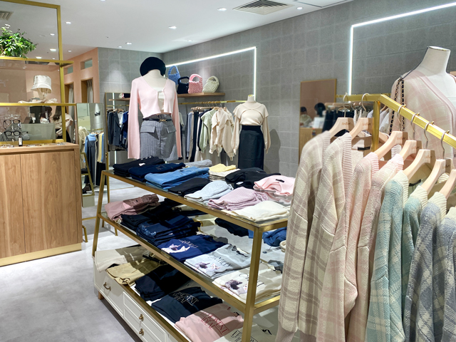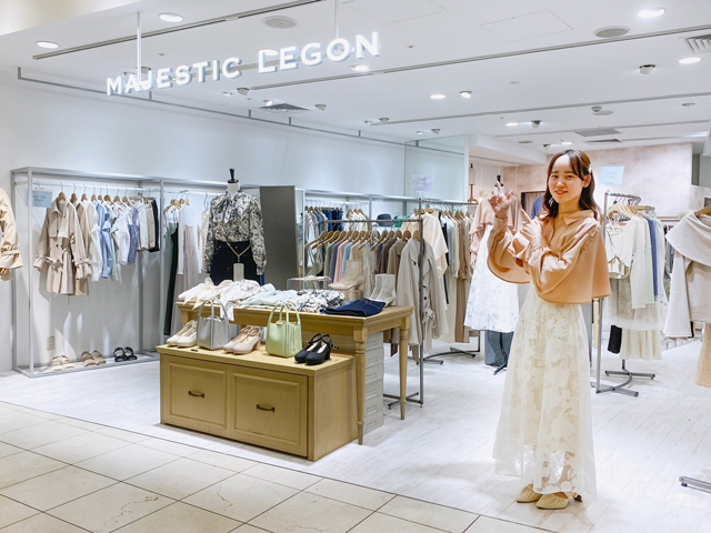 トレンドを取り入れたフェミニンなお洋服が並ぶ「マジェスティックレゴン」は、本館7Fに移動して新しくオープン。白を基調とした明るい内装になり、お洋服がぐっと引き立つ空間となりました。店内奥のピンクの壁は関西エリアでは天王寺ミオだけ! 大人可愛いフェミニンなお洋服にぴったりなインテリアで出迎えてくれます。