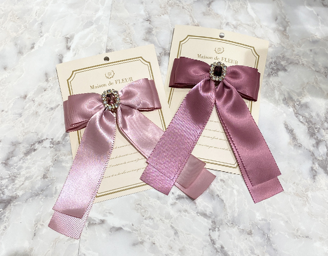 上品なサテンリボンに煌めくビジューモチーフをあしらった華やかなバレッタ。さっとまとめた髪に留めるだけでもキュートなヘアアレンジに決まるアクセントアイテムです♪