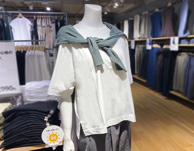 夏でも快適に過ごしやすいひんやりとした素材感に加え、UVカットの機能が加わったTシャツ。ゆったりとしたワイドなシルエットでカジュアルに着ていただけます。