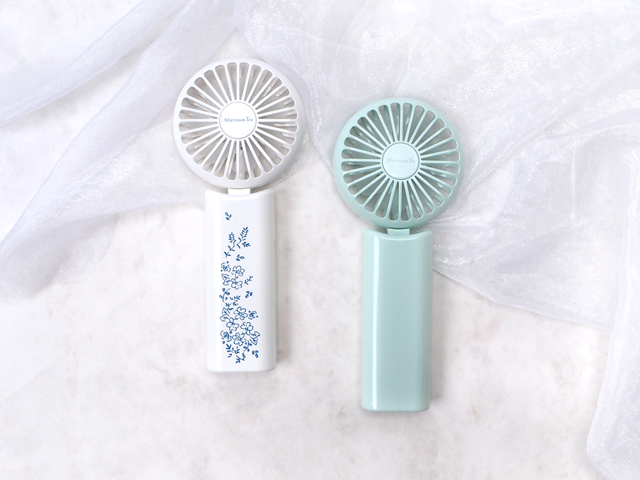 シンプルなデザインでどこにでも持ち運べる「アフタヌーンティー・リビング」のハンディファン。首の部分を折り曲げれば卓上でも使うことができ、長さを調節できるネックストラップでハンズフリーにもなる嬉しい3WAYタイプ。風量は3段階に調節でき、通勤・通学など移動中はもちろん、メイク中や家事、オフィスなど場所を問わず活躍します。電池残量を表示してくれる上、お手軽なUSB充電式なので「いざという時動かない!」ということがありません。クールスプレー(別売)を振ってから使うとさらに涼しく快適に♪