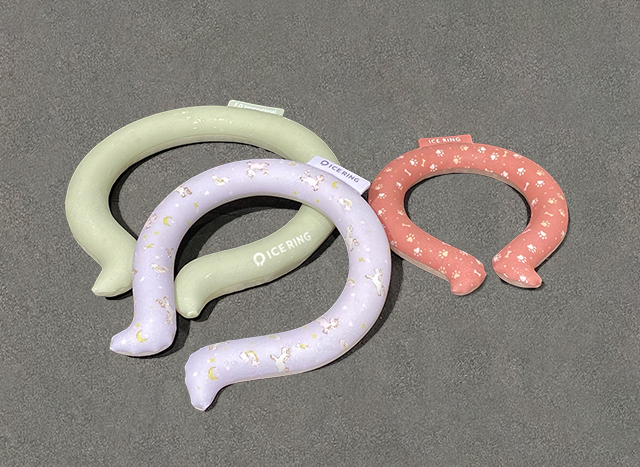 最近人気が高まっているアイスリングにわんちゃん向けアイテムが登場♪温度環境に応じて凍ったり溶けたりを繰りかえしながら、放熱・吸熱するネックリングです。冷凍庫や冷蔵庫、または冷水で冷やすだけで冷たさをキープ。暑い日のお散歩やお出かけ、ドッグランに備えておきたいアイテムです