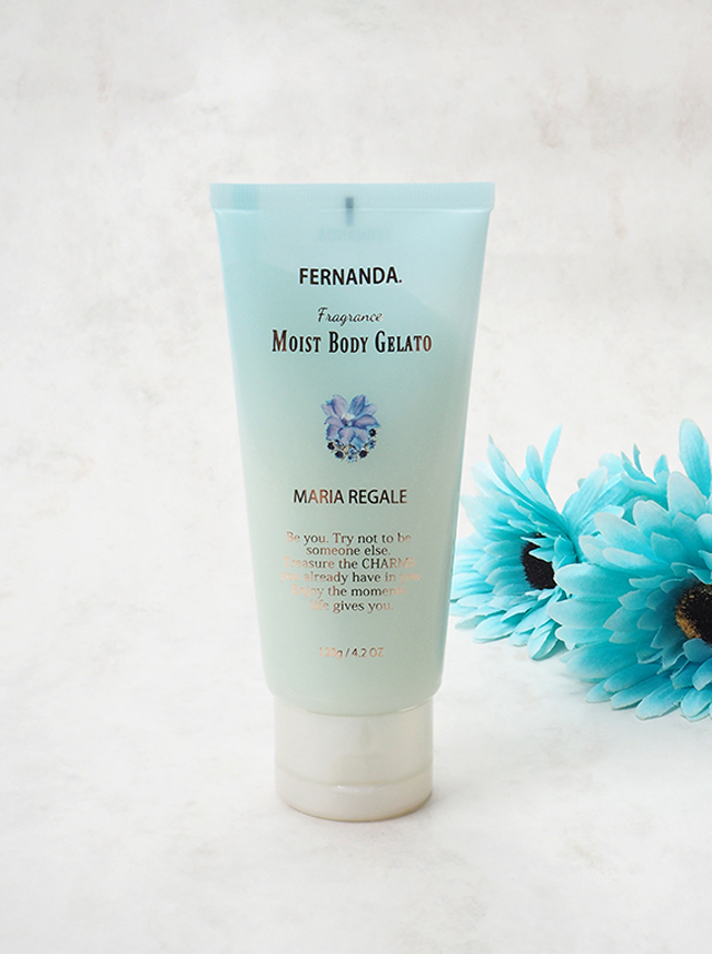 冷蔵庫や冷凍庫で保管し、ひんやり感を楽しめる新触感の「フェルナンダ」のアイテム。汗をかいても落ちづらく、保湿効果の高いリピジュアを配合。さらにお肌につやをもたらすダイヤモンドパウダーと、きめを整えるプラチナコロイドのトリプル配合で肌の水分をしっかり閉じ込めてさらさら肌へ。ジャスミンやミュゲをベースにした上品で華やかなマリアリゲルの香りも魅力です。お風呂上がりや帰宅後のリフレッシュにおすすめ。もちろんお好みで常温でも使えます。