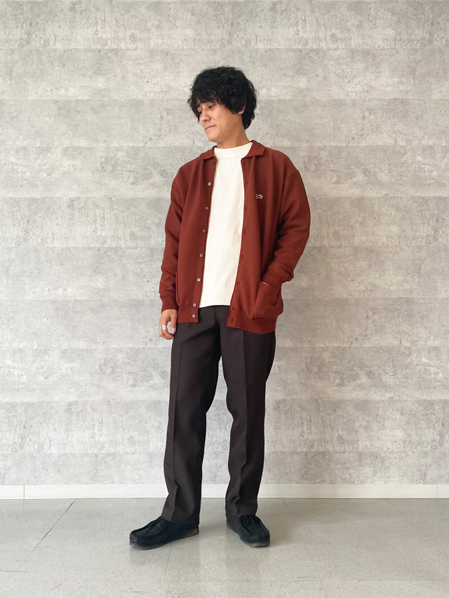 メンズアイテムなら、シャツのデザインをニットに落とし込んだシャツカーディガンが今季のイチオシ。少しゆとりのあるシルエットやドロップショルダー、長めの丈感など、ラフに着られる1枚です。胸元のキツネのモチーフもアクセントに!