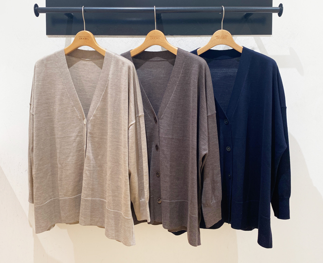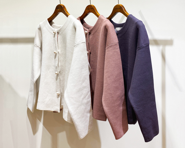 ドロップショルダーや比較的ゆったりとしたシルエットなどでこなれ感が演出できるのもうれしいところ。「オンオフさまざまなシーンで気軽に羽織っていただけます。フェミニンからカジュアルまで幅広くお使いください」とスタッフさんからアドバイス。