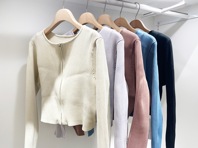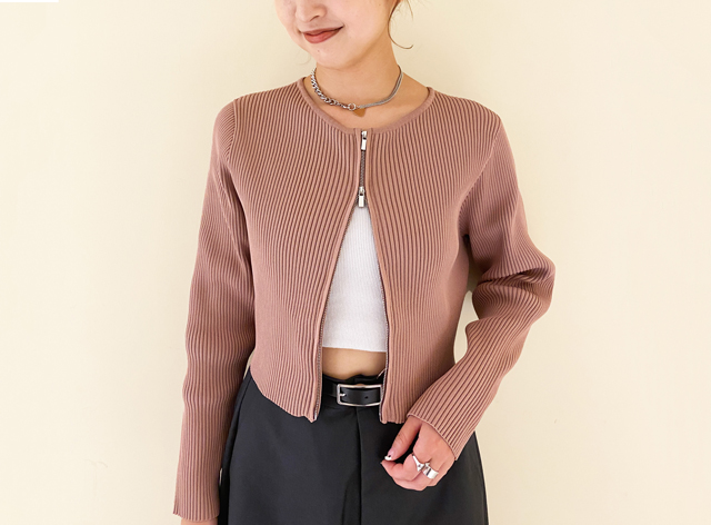春に大好評で、秋冬にカラバリを増やしてお目見えしたW ジップニット。リブがしっかり強調されたデザインで着痩せ感のあるアイテムです。伸縮性のある軽量素材で、着心地が良いのも魅力。