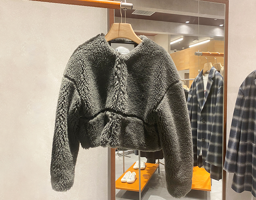 和歌山県、高野口の伝統産業であるパイル織物の最高のクラフトファーを使用したウールファーのコート。袖を通すと驚くほどに軽くて暖かく、この編み機ならではの自然なストレッチ性があり着心地抜群です◎