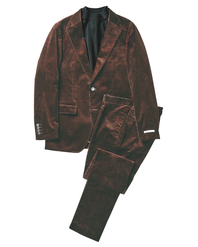 冬に人気のコーデュロイ素材を使用したセットアップ。コットン98%で暖かく、自然なストレッチ性も兼ね備えています。深みのあるブラウンカラーとスリムなシルエットがおしゃれ。デートやレストランなどの食事の場や、クリスマスパーティー、忘年会、新年会など、これからの季節に大活躍。単品使いでカジュアルに着こなしても◎。インナーにはタートルネックのセーターを合わせると適度にくだけた雰囲気に。