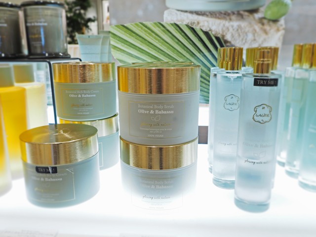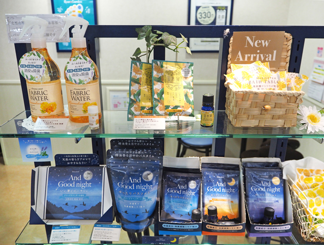 施術で使われるコスメ、「コリキュアーズ」シリーズはすっきりとしたミントの香りがふんわり広がり、リフレッシュしつつ気分を落ち着かせます。バスソルトやマッサージジェルなどさまざまなコスメも店頭に並んでいて、購入もOKです。なお、「秋のリラックスコース」はコリキュアーズシリーズのバスソルト付きといううれしい特典あり!