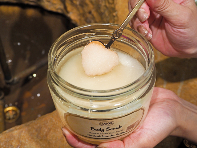 イスラエル生まれの「サボン」は、死海のミネラルを豊富に含んだスクラブが大人気。店内には商品が試せる大きなウォータースタンドが備わり、自分に合ったアイテムをしっかり選ぶことができます。