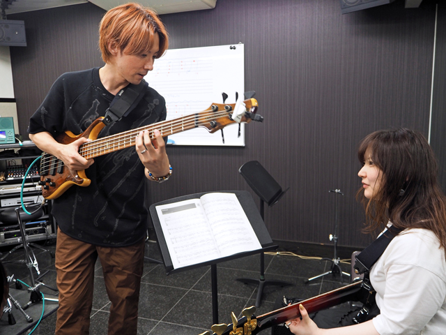 バンドの要となるベースレッスンも人気あり。アンプを繋いで音が鳴ったときの感動は格別です!