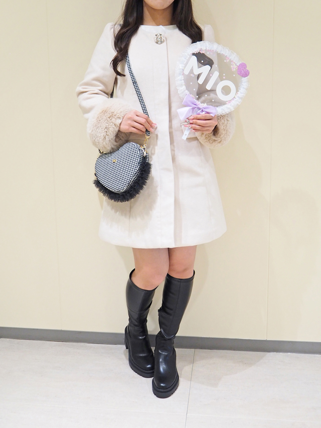 たくさん動くライブの日でも可愛らしさを絶対取り入れたい!という人なら、「アンミール」でお洋服をゲット。ビジューとファーが華やかな真っ白コートにハートのバッグをプラスして、“誰が見たっていちばん可愛い”を手に入れて。ビジューとファーは取り外しでき、シンプルに大人っぽく着られるのもうれしいポイント。