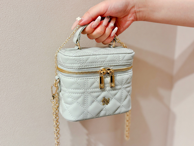こちらのキルティングバッグは大人気バッグのミニサイズで、お洋服に合わせやすいサイズ感。6色展開なので、推しカラーをさりげなくコーデにプラスできます!キルティング部分に隠れた♡モチーフもキュート。