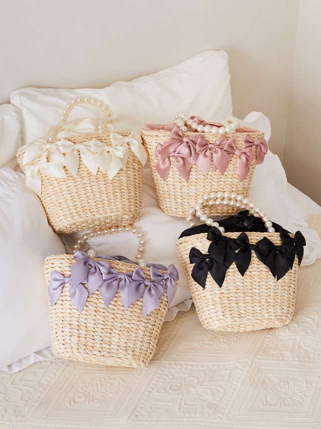 パールハンドルメイズリボンカゴバッグ 各11,000円