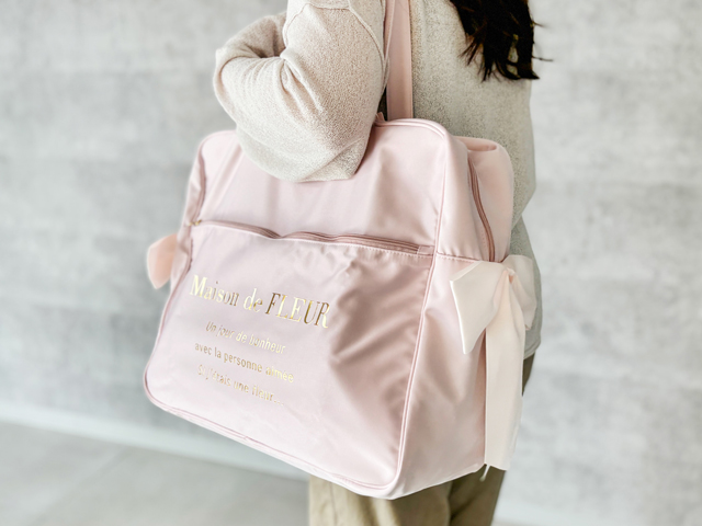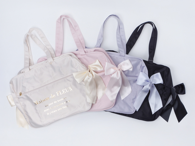 2025年の春コレクションから、上品なサテン地とロゴが目を引くバッグが登場。大きなリボンが大人可愛いアクセントに♪マチ幅たっぷりで収納力抜群、便利な前面ポケット付きで肩掛けも楽々な上、キャリーケースにドッキングできるので遠征にもぴったり!