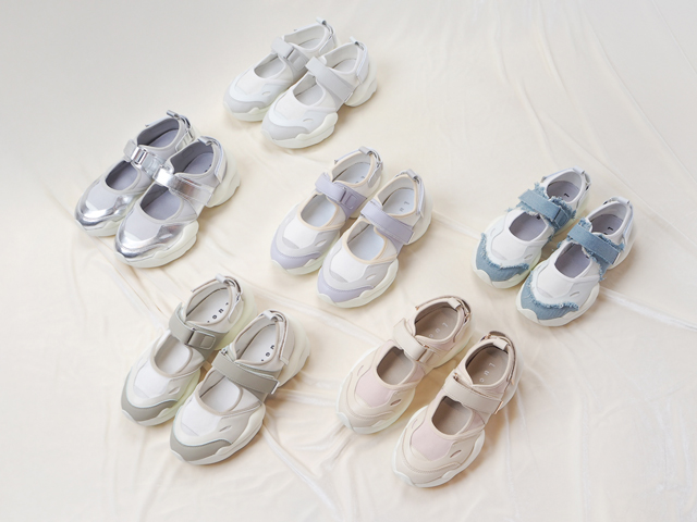 ピンクやブルーなど淡くて可愛いカラーも展開しているローヒールスニーカー。履き口のシャーリングが足をしなやかにサポートする柔らかな履き心地です。アーモンドトゥが美しいフォルムの秘密。スカートでも履きこなしやすく、立ち時間の長いライブでも快適に楽しめます。