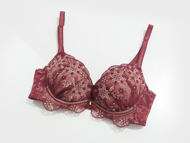 カラー展開も豊富で、クリスマスには夜を華やかに彩る「ボルドー」がおすすめ。クラシカルで華麗なレースとストレッチチュールがエレガント。さりげなくセクシーさを演出しながら、冬らしく飽きのこないデザインが魅力です。