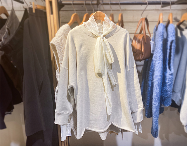 レイヤードさせるだけでこなれ感が増すチュールプルオーバー。スウェットやカーデなどに重ねてレイヤードスタイリングをお楽しみいただけます。オーバーサイズのラフなスウェットをあわせてrelumeらしいカジュアルなコーデに◎